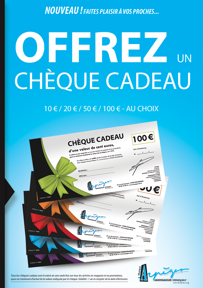 Pensez à offrir un chèque cadeau Arpèges : 10 €, 20 €, 50 € ou 100 € au choix !
