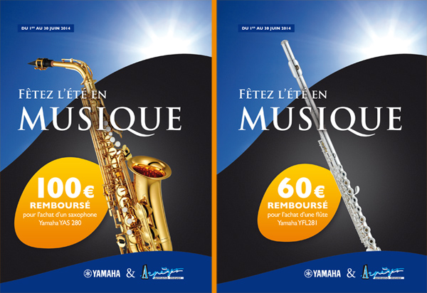 Du 1er au 30 juin 2014, Yamaha vous rembourse jusqu’à 100 € selon l’instrument choisi pour l’achat – chez un des revendeurs agréés Yamaha participant à l’opération – d’un instrument à vent d’étude Yamaha  éligible à l’offre (voir ci-dessous)